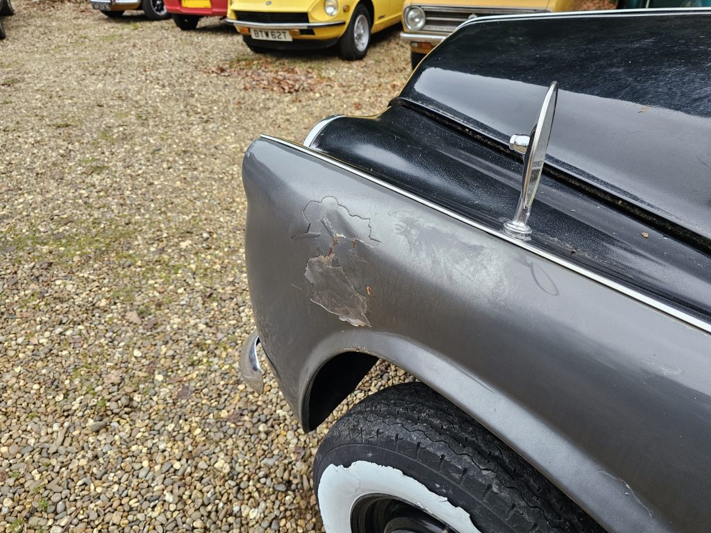 Does show various imperfections and poor previous repairs here and there, notably some damage to the bodywork/paint as pictured.