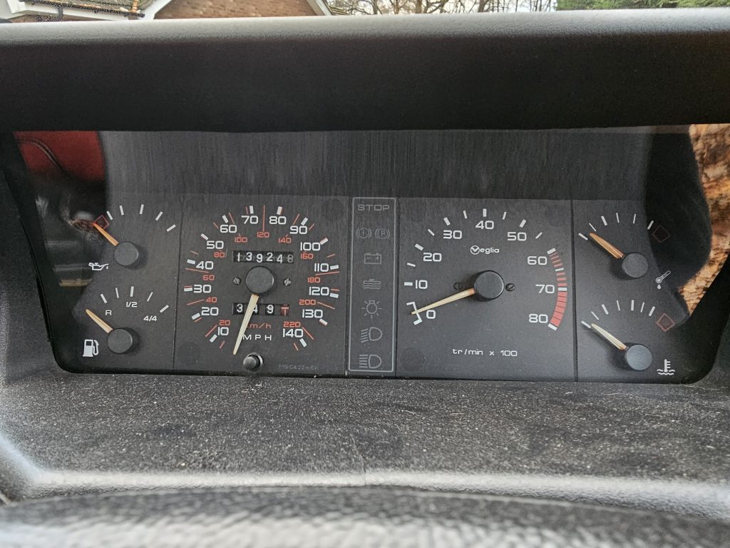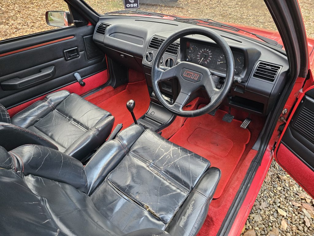 The interior features full leather seating from the 1.9 GTi ‘Miami’ edition, it is in useable condition but does show some wear – ideally the seats would benefit from being retrimmed. They are however still comfortable and supportive. It could do with a new speedo cable as the speedo works when it likes.